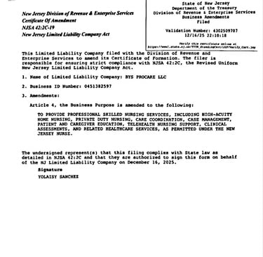 We operate in compliance with the New Jersey Nurse Practice Act (N.J.A.C. 13:37) and all applicable state and federal regulations.